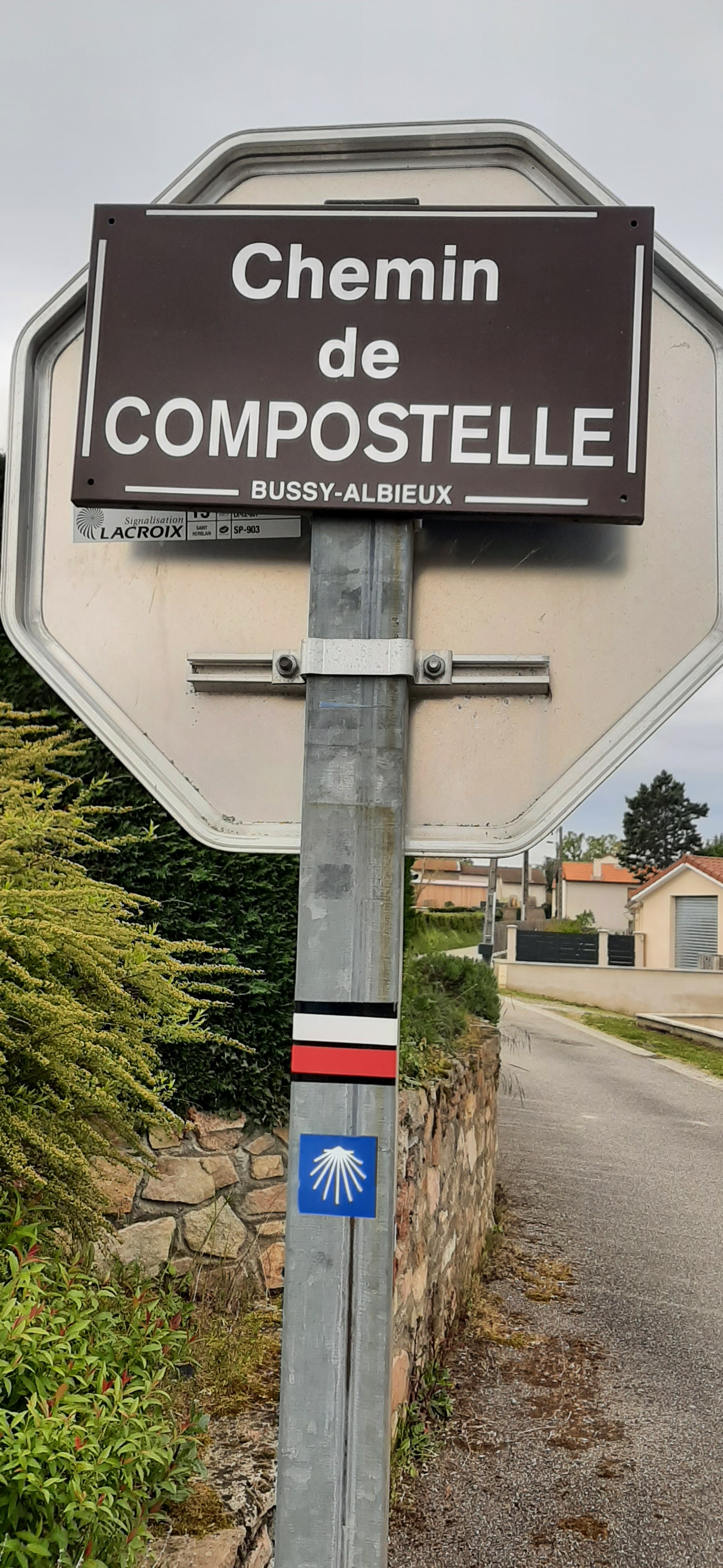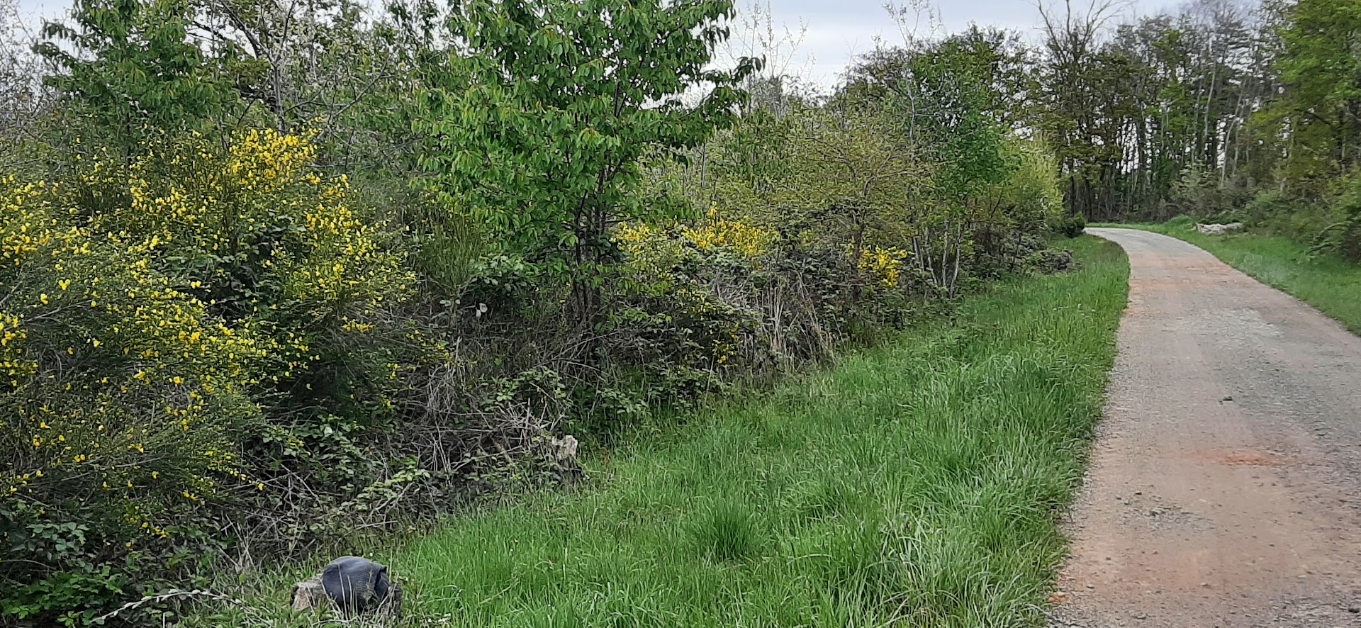 De foto's van de brem en de bloemen horen er ook bij. Dat was niet alleen vandaag, maar al vanaf het begin van onze trektocht. Overal ook blauwe regen en blauwe+witte seringen.