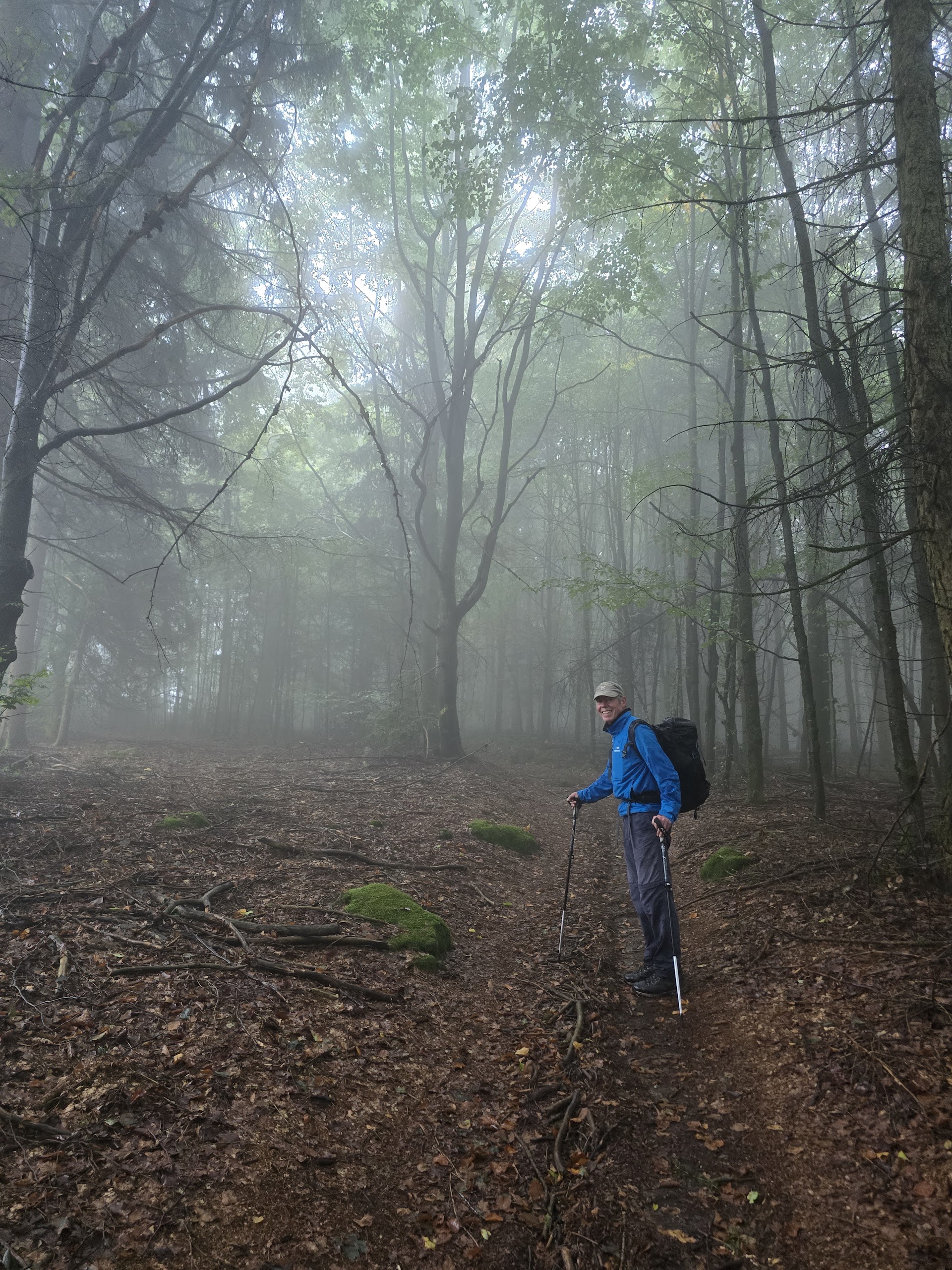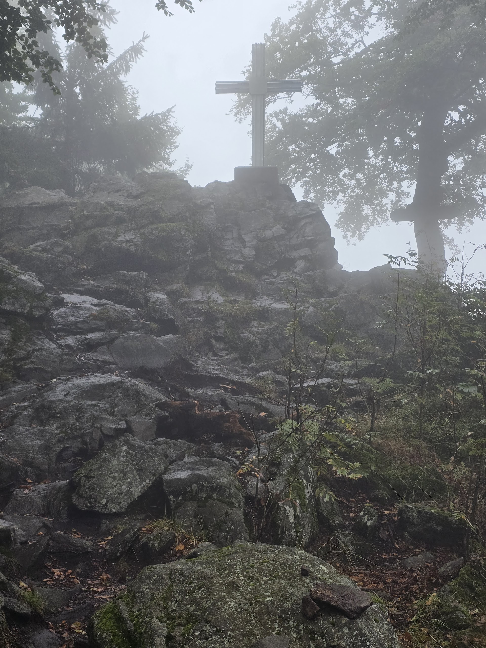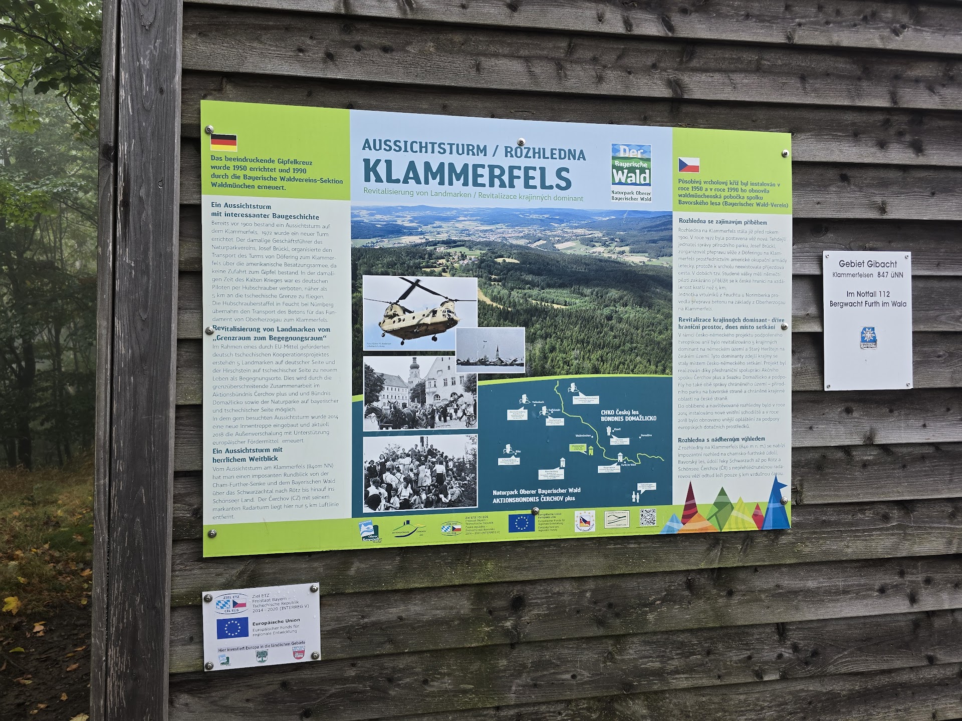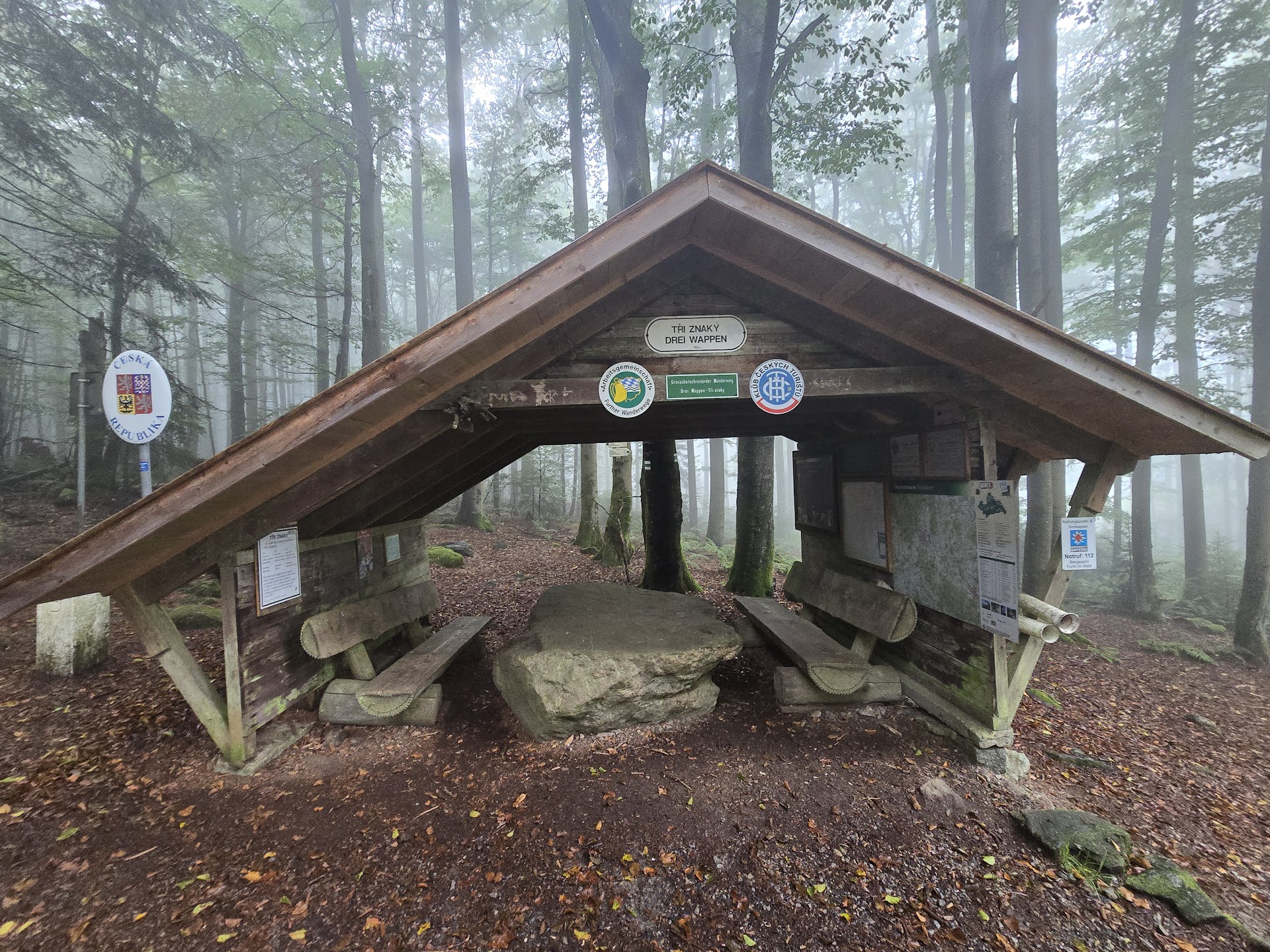 Vandaag een korte etappe, 19km met 419 hoogtemeters, maar wel de mooiste tot nu toe. Jammer dat we het grootste deel in de wolken of de mist hebben gelopen. Na 14:30 knapte het weer op en kwam de zon door. Voor het eerst hebben we een een koffie kunnen scoren, dus ook maar gelijk chocolade/kokos gebak erbij, bij de Gibacht hütte: 10 punten! We zijn in Tsjechië geweest maar snel weer teruggekeerd naar Duitsland 😉. Dat was bij de "drei Wappen". Daarna het hoogste punt van vandaag en van de hele route tot nu toe, de Kreuzfelsen op 940m. Alles in de mist, dus we hebben helaas niet van het uitzicht kunnen genieten. De lunch was wat later dan normaal, dankzij het gebak, op een keurige golfbaan bij Furth im Wald. Een mooie plaats waar we even zijn blijven hangen voor een weizen. Aangekomen bij de jeugdherberg, een biertje gevonden in de koelkast 😀, wachten we op personeel. Voor vanavond even zien wat we met het eten doen. Pizza laten komen of toch even terugwandelen (dan zonder rugzak) naar Furth.
