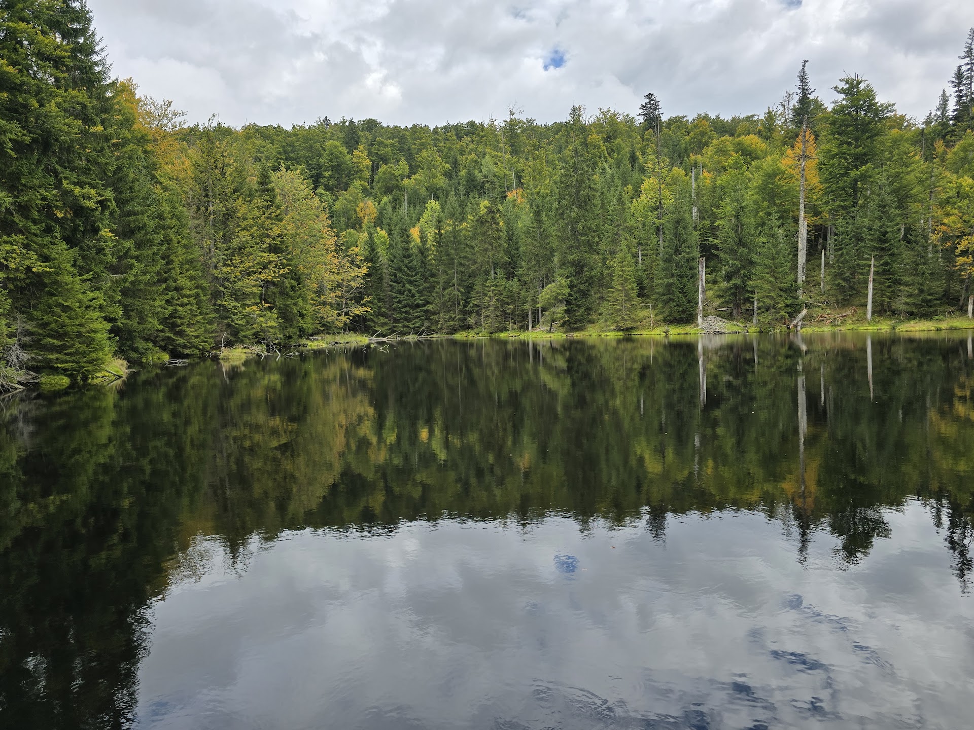We hebben de bus terug naar Gfäll genomen om de Goldsteig weer op te pakken bij de Rachelsee. De Rachelkapelle (op de foto met telelens) hebben we maar overgeslagen. Scheelde weer een klim van zo'n 200m + zelfde weg terug. Daarna een lang stuk door het bos zonder uitzicht. Bij het eerste beetje uitzicht een korte pauze, want een hut met koffie zit er niet in vandaag. De afslag naar Walhäuser, waar we slapen in een jeugdherberg, zijn we ongemerkt voorbij gelopen. Daardoor kwamen we wel uit bij het Teufelsloch! Vanaf daar naar beneden langs de Martinsklause, wat denk je: een meertje! Dus toch nog een paar plaatjes. Het weer wordt beter en de verwachtingen zijn goed, dus morgen waarschijnlijk weer in korte broek! Nu eerst: douche, bier, eten… dat gaat weer lukken!