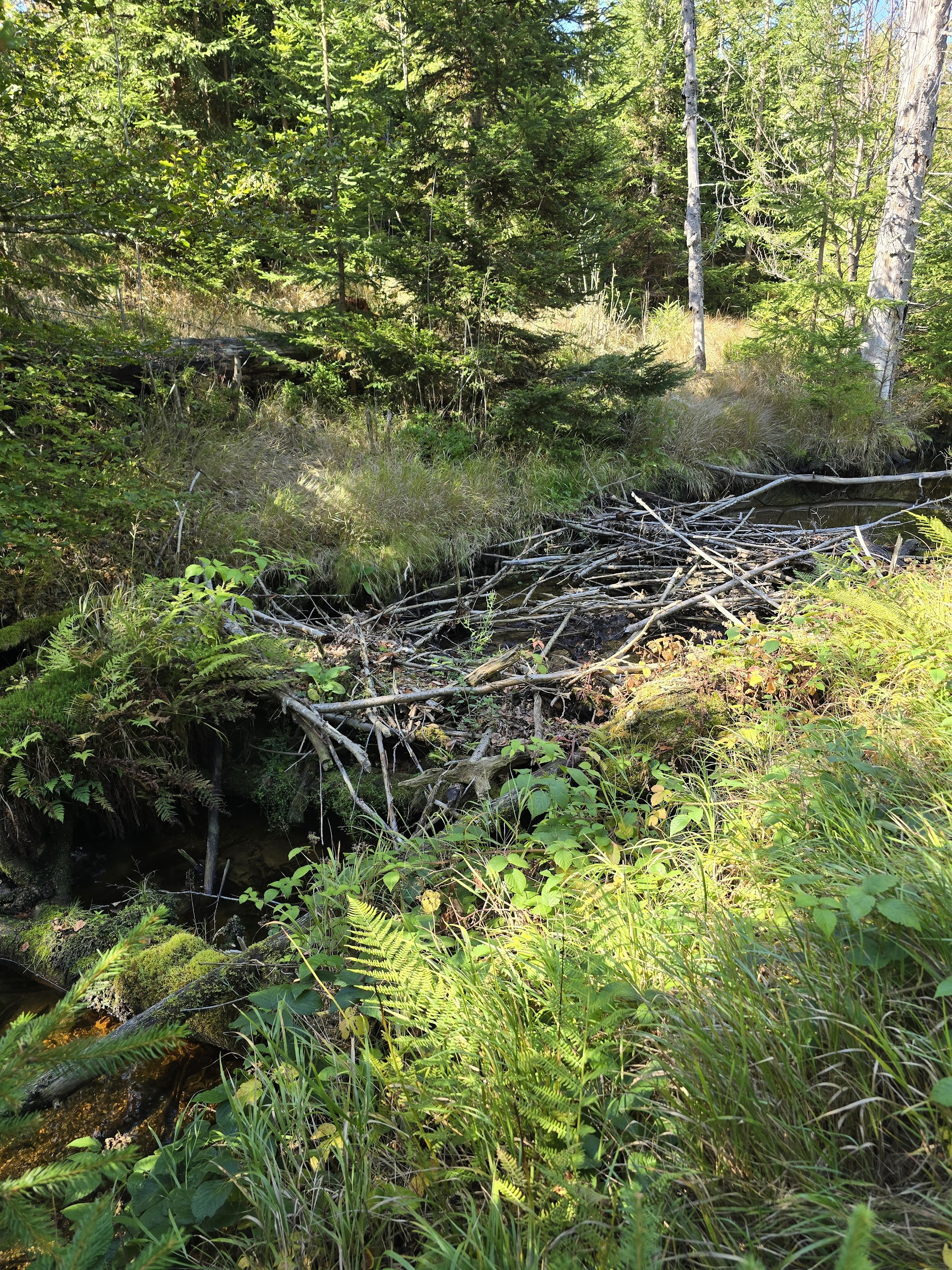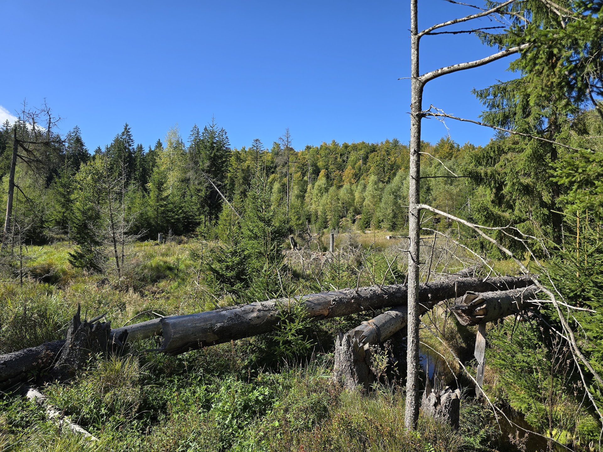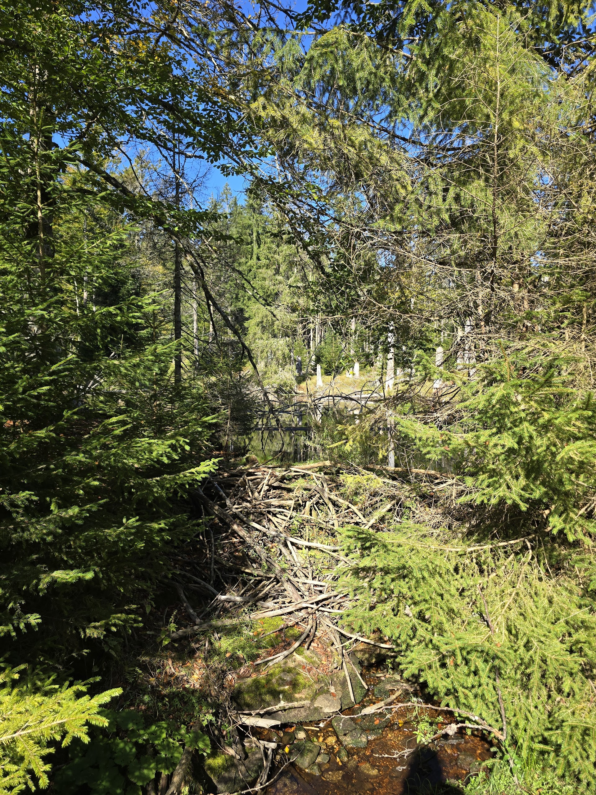 We waren afgelopen nacht de enige gasten van de jeugdherberg in Waldhäuser. Vanochtend toch 4 mensen aanwezig, eenmaal receptie, 2x keuken, en een klusjesman. Toch mooi dat we er terecht konden. Ontbijt om 08:00 en de bus om 08:31, Het paste precies om naar Lusen Waldhausreibe te komen. Vandaar klimmen richting Lusen Schutzhaus en de Goldsteig weer opgepakt. Net als gisteren een redelijke afstand door alleen maar bos, dus een saaie foto! Toch hier en daar wat water met een aantal beverdammen. Bevers hebben we niet gezien maar de sporen zijn overduidelijk. Overigens ook sporen van wilde zwijnen. Via de Tummelplatz (korte pauze) naar Mauth waar we onze boterhammetjes opgegeten hebben. Daarna de klim naar het skioord Alpe. Onderweg een recordaantal mierenhopen, tientallen, terwijl we die tot dusver nog nauwelijks gezien hebben. We zijn vroeg aangekomen zijn, dus tijd voor een wasje voordat we aan ons standaard ritueel beginnen. Etappe van 18km met 570 hoogtemeters.